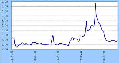 货币市场:上周,央行公开市场已连续四周空窗操作,其中本周到期资金致净投放1600亿元人民币。市场资金面已基本恢复平稳,7天质押式回购利率较前周下行4个基点至3.77%