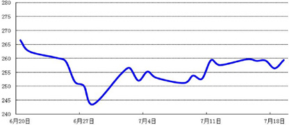 债券市场:上周,虽流动性已逐步回归正常态势,但由于中国宏观经济预期不甚明朗,再加上中长期品种一级招标结果亦不理想,带动二级市场长端抛压较为沉重,银行间债市现券走势较为疲软,收益率震荡走升。相应中债总财富指数下降0.31点至145.14