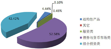 组合投资类产品共计发行4391款,较上季度增加344款,增幅为8.50%;市场占比受债券与货币市场类产品增长幅度较大的影响,从上季度的43.35%小幅下降至42.42%。自从“资金池”运作模式的理财产品受到监管层关注与监督之后,组合投资类理财产品的发行步伐逐渐趋缓,产品发行款数的增长幅度及市场占比持续下降。
