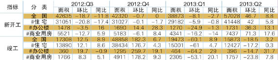 表3 2012年Q3 -2013年Q2房地产开发投资及增长情况 单位:万平方米、亿元,%