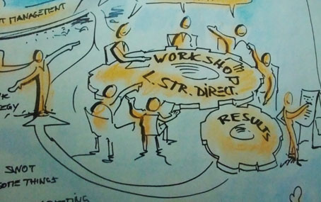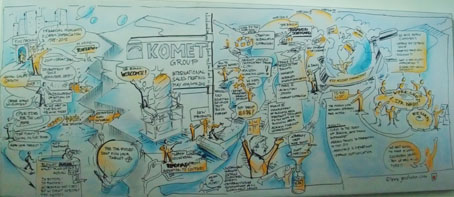 拐上高迈特(太仓)有限公司的二楼,便能看到这样一幅漫画式的企业宣传画,展示了公司总部全球大会的场景。严谨的德国人更愿意用轻松的方式表达自己的企业文化。