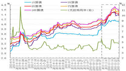 银行间市场资金面将较11月小幅改善,7天回购利率中枢预计回落至3.8%-4.3%