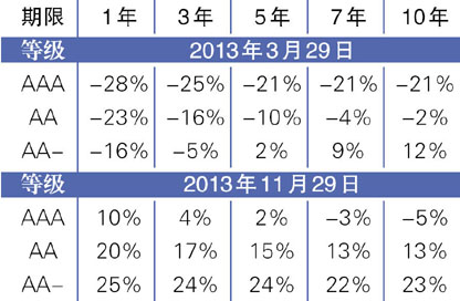 表1 信用债收益率相对于贷款基准利率的上浮程度