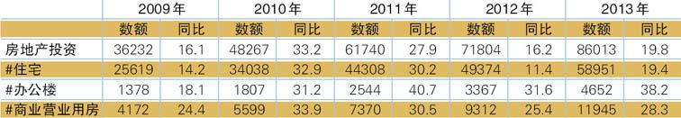 2 2009-2013年全国房地产开发投资情况   单位:亿元,%