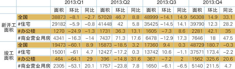4 2013年各季度房屋建设情况   单位:万平方米,%