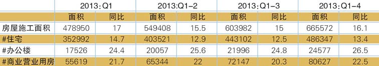 2012年全国房屋施工面积573418万平方米,2013年全国房屋施工面积665572万平方米,同比增长16.1%2012年同比增长13.2%)。