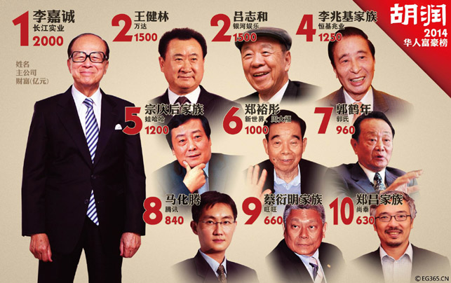 胡润研究院发布2014全球富豪榜。榜单显示,共有1867位富豪上榜,比尔·盖茨凭借4100亿元人民币财富得全球首富桂冠。华人富豪比去年多108位,达到457位。IT行业成为今年的赢家,超过去年的冠军房地产行业。在富豪大中华出生地榜单上,广东以58人居首,成为富豪之乡。全球十大房地产商中有7位来自大中华地区。图/CFP