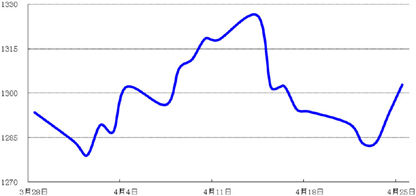 上周,因乌克兰暴力冲突升级,提振了黄金的避险吸引力,带动国际金价上涨,周五收于1302.84美元/盎司,较前一周上涨0.71%。