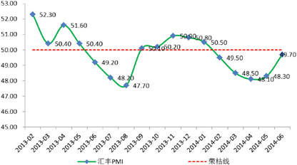 经济领先指标:2014年5月份汇丰PMI终值为49.4,制造业萎缩幅度为四个月以来的最小;中采PMI为50.8%,为连续第3个月回升,预示我国制造业继续稳中向好。5月PMI环比回升动能较为强劲,或与定向稳增长措施逐步推进有关。去年三季度经济在没有显性大幅刺激情况下明显回升的情况可能重现,但仍需跟踪更多高频数据来印证目前经济复苏的持续性和力度。(图2)