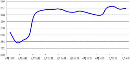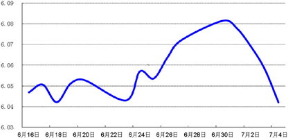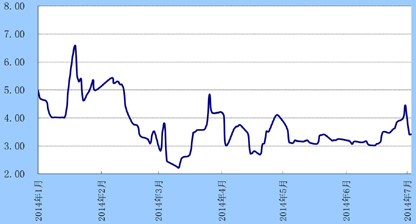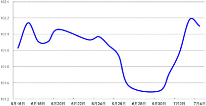 货币市场:上周,半年末时点过后,银行间市场资金面整体趋松,除隔夜质押式回购外,其它质押式回购品种收益率呈现不同程度的下行,其中,7天期品种收益率下行43个基点至3.42%。