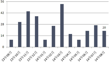 本月阳光私募产品共发行20款,环比下降7款,数量与6月份持平。由于信息披露等原因,可能我们对阳光私募的统计偏少,但大致趋势不会有太大误差。(图8)