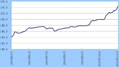 上周,外汇市场波动较大。美国共和党自2006年以来首次在中期选举中赢得参众两院控制权,提振了美元;而日本央行意外扩大量化宽松政策的影响力犹在,带动日元触及近七年低位;人民币中间价走势平稳,即期市场成交价小幅下跌0.02%6.1146元。