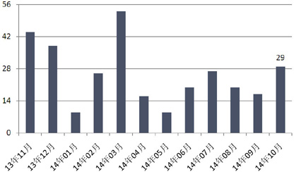 10月受国庆长假影响,银行理财产品发行数量下跌,市场资金面仍保持宽松形势。银行理财产品的收益率与SHIBOR走势较为吻合,短期类型产品的平均预期收益率环比出现上升,中长期类型产品则有所下跌。广东华兴银行酝酿于今年底推出可转让银行理财产品,此次可转让理财产品的交易模式可能包括一口价和竞拍两种形式。未来如果能够增加转让功能,那么银行的理财“资金池”所面临的流动性风险将大大降低;信托产品发行数量激增,主因A股市场走强,证券投资类产品增多。银监会批准全国信托登记中心落户自贸区;非金融企业参与银行间债券市场开闸;证券机构试点发行短期公司债。来自普益财富