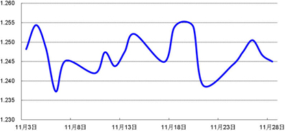 上周,人民币对美元中间价整体走强,当周累计升值0.07%,并于周四触及近八个月新高;但即期市场成交价并未跟随中间价升值,受央行意外降息及月末购汇偏多等因素影响,人民币即期价格小幅走弱,当周累计贬值0.33%。