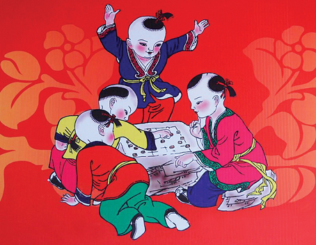 武强木版年画——六子争头