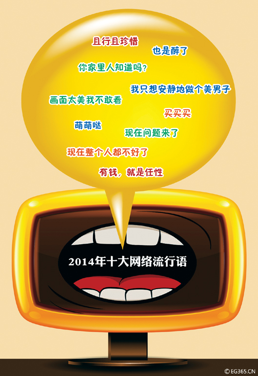 小伙伴们,2014年马上就要结束啦,时间之快,总是让人忍不住唱起来“时间都去哪儿了”。这一年,又有很多新的网络词汇“横冲直撞”进入了我们的生活,下面总结了2014的十大网络流行语,排名不分先后,快来看看哪句才是你的菜!图/CFP