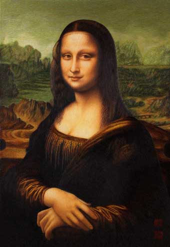 从此,姚惠芬每当出国或者到各地考察的时候,最喜欢到美术馆、展览馆看绘图作品展览。虽然最初是因为喜爱《蒙娜丽莎》才开始走出家乡学绣人物肖像,但姚惠芬一直觉得条件不够成熟没有动针绣自己的《蒙娜丽莎》。2002年的时候,她有机会到法国卢浮宫看到了原画真迹,当时还买了很多相关的画册、明信片带回来,但还是没有绣。2006年她有机会再次去欧洲,又看了《蒙娜丽莎》,经过反反复复的比较研究,姚惠芬终于开始着手绣《蒙娜丽莎》。一幅《蒙娜丽莎》,姚惠芬花了约三年的时间来完成。姚惠芬是谨慎的,认真习研后,等胸有成竹才动的手。