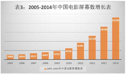 从中国电影票房及屏幕数增长情况看,自2005年以来的十年时间里,中国电影走过了一个快速拉升期。这一时期,主要是由于院线的加速建设和观众人数的急剧增加,中国电影票房从08年的世界前十不入,到2012年正式超越日本成为世界第二大票房。电影票房和中国经济总量成正相关。2010年中国的国民生产总值正式超越日本跃居世界第二,电影票房正是经济提升的一个层面上的表达。