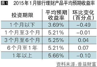 从银行间市场资金面来看,本月初受年末及元旦假期因素影响,仍然保持较高水平,随后3个月以下的短期SHIBOR利率出现走低,而6个月以上的中长期资金利率均有所上升。银行理财产品的发行收益率与SHIBOR利率的走势呈正相关关系:1个月以下、1-3个月期限类型理财产品的平均预期收益率较上月出现下降,而3-6个月、6-12个月期限类型出现上涨。