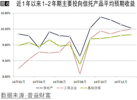 本月集合信托预期收益率普遍反弹,1-2(含)年期限段产品平均预期收益率10.20%,环比上升6.35BP,其中,房地产领域平均预期收益率10.33%,环比下降11.21BP,工商企业领域平均预期收益率10.30%,环比上升5.17BP,基础设施领域平均预期收益率10.12%,环比上升2.21BP2-3(含)年期限段产品平均预期收益率10.23%环比上升78.33BP,其中,房地产领域平均预期收益率9.90%,环比上升81.67BP,基础设施领域平均预期收益率10.24%,环比上升56.50BP3年期以上产品预期收益率没有统计意义。