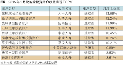 截至20151月底,在运行的投连险投资账户共计184个,所有投资账户的月度平均收益率为2.65%