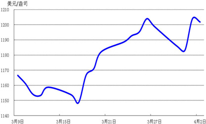 由于美国公布的ADP就业数据不及预期,带动国际金价于周三跳涨2%,为近两个月来最大单周涨幅,周四收盘于1201.84美元/盎司,较前一周上涨0.25%