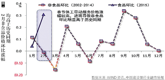 通胀:2月物价超预期回升同春节假期因素密切相关。结合春节消费的略显平淡,春节对物价产生影响的商贩服务业休假、消费者集中消费两个维度中,前者或影响更大(企业提早结业、推迟重新开业时间、乃至经营萎缩辞退员工等,导致大中城市临时性用工缺口延长)。进入3月,春节效应消褪后,蔬菜等食品价格或回落较快,而外来务工人员陆续返城、服务业陆续开业,也会平抑非食品价格上涨。预计一季度CPI同比涨幅在1.2%左右的低位。此外,针对猪肉价格问题,我们认为,从根本上看,国内生猪养殖业的产能淘汰和升级程度仍未达到适应新的市场需求态势的水平。需求下行的力量或将在后期猪肉供需较量中位居上峰。“猪周期”在今年乃至更长时期出现的概率愈发渺茫,猪肉价格主导居民消费价格涨幅的时代或已一去不复返。(图1)