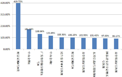 从表现靠前的产品来看,排名前十的产品中有9只为非结构化产品,这种情况并不常见。(图8)