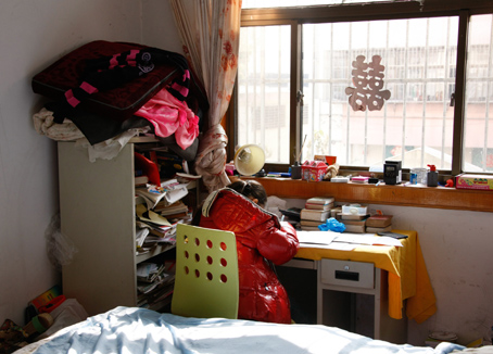 在杨鹤桂的家里,窗上还贴着大女儿结婚时的喜字。小女儿小慧已经上五年级了,作业多,也帮不上妈妈什么忙。