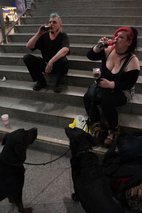 人们对火车站里的这两个奇葩视而不见,他们带着狗游逛,顺便讨些零钱给狗买吃的。他们轻松快乐的表情,是熙熙攘攘的正常人所少有的,我一时怀疑,到底是谁更正常?要是我的儿女也选择这种生活方式如何?从前我是不可能接受的,如今我会坦然尊重他们的选择。