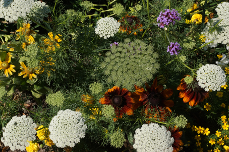 魏玛火车站站前广场的花丛吸引了我。很多品种杂种在一起,没有单一花种那么醒目,但很耐看。面对无穷的局部组合,我拍了几十张。若是洗出照片装饰屋子,既小资,又不太矫情。后来看到德国有很多这样的杂种花丛。原本执着得有些死板的德国人,种起花来却如此自由活泛,只能归于他们的审美修养了。