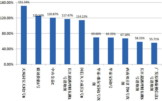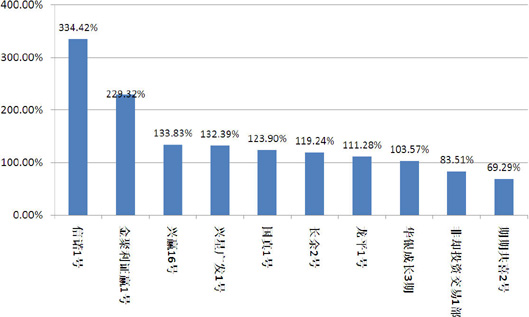 从表现最好的产品收益情况看,月度收益率前十的产品收益都在50%以上。(图10)