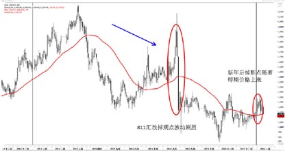 1月至3月上旬人民币持续走弱,最高成交在6.2763。3月中旬人民币连续大幅走强,最低至6.1805。3月下旬至7月底市场主要在【6.19,6.22】区间震荡,整体价格变动不大。8月11日,人民银行宣布完善美元对人民币中间价形成机制,使人民币汇率朝着更加市场化的方向迈进,“811汇改”使得人民币一次性贬值2%。12月1日,人民币在其国际化进程上再次迈出重要一步,国际货币基金组织(IMF)宣布正式将人民币纳入特别提款权(SDR)货币篮子,人民币也成为继美元、欧元、英镑和日元后的第五种货币。经历了2个月的调整,从2015年11月初开始,人民币揭开了持续贬值的序幕,USDCNY从6.35升至2016年1月8日的6.59,贬值幅度约3.8%。单是新年首周,人民币贬值幅度达到1000点(合1.54%)。(图1)