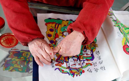 朱仙镇的木版年画在2002年被列入中国民间文化遗产抢救工程,不久又被列入国家首批非文化遗产名录。如今,能全面掌握年画雕版、印刷、调色的老艺人已寥寥无几,尹师傅是目前被河南省委宣传部、省文联命名的朱仙镇木版年画唯一的传承人。