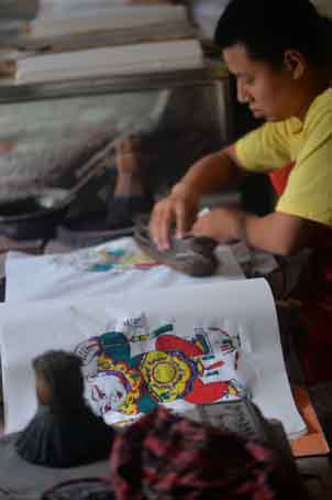 “不行。尹师傅停下手中的活儿回答说:这是祖祖辈辈沿袭下来的,包括一些模板,都是老辈留下来的,宁简勿繁,这就是传统木版年画的特色。尹师傅同时也提出了他自己的看法:发展朱仙镇木版年画,首先应该尊重原版。朱仙镇木版年画的特色就在于线条粗犷,人物形象夸张、饱满,还有就是纯植物熬制的颜料,全部都是沿用的传统工艺。如果一味追求精细化、批量化生产,会失去木版年画原有的味道。