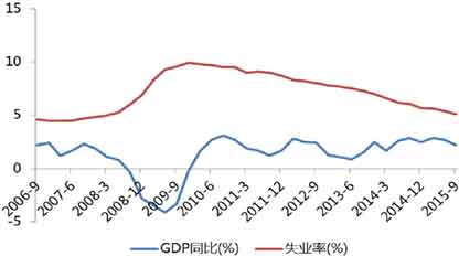 2015年美国就业市场保持高增长态势,经济走上稳步复苏。物价方面,排除能源和食品价格波动,核心CPI同比增速攀升至2%,达到美联储目标水平。GDP同比增速连续6个季度超过2%,个人消费支出拉动因素显著。制造业PMI好于其他主要经济体,基本位于50上方。