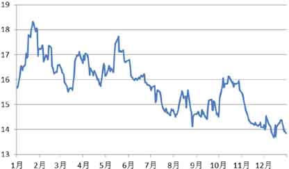 铂、钯市场走势基本可分为三个阶段:1-9月,受美联储加息预期、强势美元打压以及大宗商品普跌的影响,铂、钯均出现大幅下跌;9-10月,大众汽车造假事件给柴油汽车购买需求、进而对铂金需求带来巨大压力,铂金走弱,而钯金作为铂金的替代品走出一波上扬行情;10-12月,美联储加息得到确认,铂、钯在全球商品普跌的背景下,下探至成本区间附近,低位盘整。(图9)