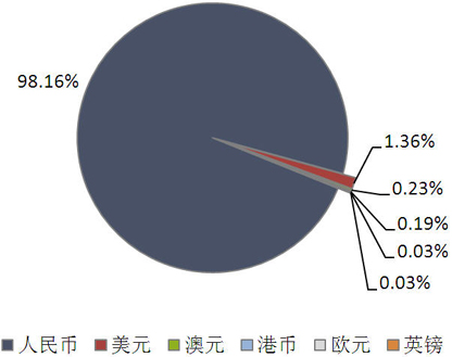 从投资币种来看,人民币产品发行了6332款,环比减少1280款,市场占比保持不变,仍为98.16%;美元产品发行了88款,环比减少6款,市场占比上升0.15个百分点至1.36%;澳元产品发行了15款,环比减少7款,市场占比下降0.05个百分点至0.23%;港币产品发行了12款,环比减少4款,市场占比下降0.02个百分点至0.19%;欧元产品发行了2款,环比减少5款,市场占比下降0.06个百分点至0.03%;英镑产品发行了2款,环比减少2款,市场占比下降0.02个百分点至0.03%。(图2)