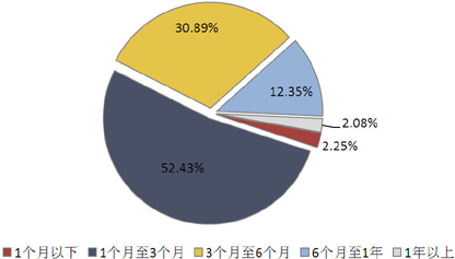 从收益方面来讲,短端终止了上月的收益反弹,跌至2012年以来冰点:1-2(含)年期限段产品平均预期收益率为8.58%,环比下降32.86BP,其中,房地产领域平均预期收益率为8.80%,环比下降13.53BP,工商企业领域平均预期收益率为8.38%,环比下降79.29BP,基础设施领域平均预期收益率为8.66%,环比下降18.26BP;2-3(含)年期限段产品平均预期收益率为8.82%,环比下降50.74BP,其中,房地产领域平均预期收益率为9.45%,工商企业领域平均预期收益率为8.70%,环比下降80.00BP,基础设施领域平均预期收益率为8.69%,环比下降80.83BP;3年以上期限段产品平均预期收益率为8.13%,环比上升13.33BP,其中,房地产领域平均预期收益率为8.05%,基础设施领域平均预期收益率为8.30%。(图6)