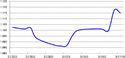 上周,欧洲央行货币宽松力度超出市场预期,但欧洲央行行长德拉吉暗示没有进一步降息的必要,带动欧元先跌后涨,美元指数承压。美元对人民币中间价及即期市场成交价均触及年内低位,周五,美元对人民币即期价格收于6.4985,较前一周下跌0.36%