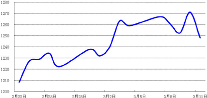 上周,美元指数疲软,以美元计价的国际金价随之上扬,并再次触及13个月来高位。周五,因美元反弹和原油及全球股市上涨,金价承压,收盘于1248.06美元/盎司,较前一周下跌0.87%