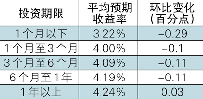 收益表现:银行理财产品收益水平继续下滑,1-3个月期产品即将跌破“4”关口