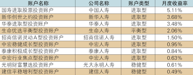 投连险账户业绩表现:月度平均收益率为-0.68%,中国人寿进取股票投资账户表现最佳