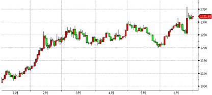 国际黄金现货市场开于1,062.71美元/盎司,收于1,321.90美元/盎司,上涨24.58%。期间,最高价1,358.54美元/盎司,最低价1,061.94美元/盎司,区间宽度296.6美元。国内与国际市场金价走势趋同,上海金交所黄金T+D收于281.72/克,上涨26.33%。(图1