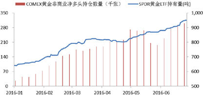 5 SPDR黄金ETFCFTC黄金非商业净多头持仓