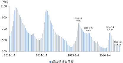 国内铁矿石港口库存方面,铁矿石进口扩张的压力相当一部分被转为库存压力。2016上半年末,总库存再度升至亿吨上方。钢企对后市预期并不乐观,维持低库存的经营策略。