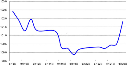 上周,人民币走势震荡,在较宽区间内双向波动,周五,因美联储加息预期升温,购汇增加带动人民币对美元价格快速下跌,收盘于6.6688,当周累计下跌0.28%