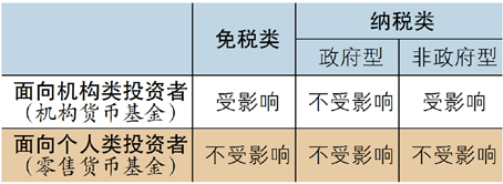 另外,针对不同类型的货币基金,此次SEC新规实行的是区别对待。例如,按照投资标的划分,美国货币基金市场分为政府货币基金、优质货币基金和市政货币基金,其中优质和市政货币基金净值将按照新规转为根据实际持仓浮动,这无疑会降低这类基金对投资者的吸引力,相应政府货币基金不执行此规定,其对投资者的吸引力则相应上升。(表1