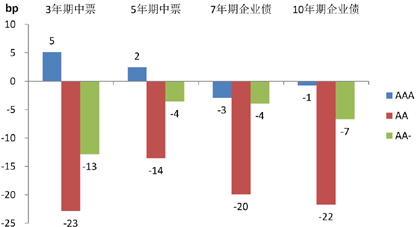 2. 信用债利差多收窄,低等级信用债表现明显优于高等级,中长期限表现优于短期限