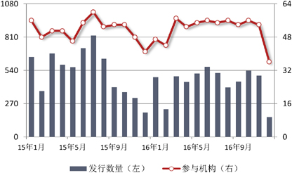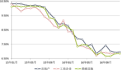 2016年集合信托发行数量和收益出现了双降。实际上,通过集合信托融资的需求早在2015年已在减弱,只是由于当时A股盛宴引致的配资需求从总量上掩盖了这一现实情况。随着经济接近底部,尤其是其他新兴的融资渠道风险开始显现,预计2017年集合信托数量下滑将在一定程度上得到缓减,甚至扭转。2016年四季度债券市场的收益率开始上升,这将在2017年传导到集合信托市场,但也不大可能恢复到2014-2015年水平。